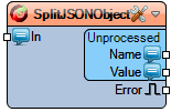 The **Split JSON Object** component parses a JSON-formatted text input and extracts its fields into separate output channels based on the configured element types: - **Text/String Element** - **Digital/Boolean Element** - **Integer Element** - **64-bit Integer Element** - **Unsigned Element** - **64-bit Unsigned Element** - **Analog Element** - **Object Element** - **Array Element** - **Any JSON**