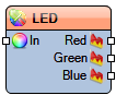 Basic RGB LED component with color input control. Provides independent red, green, and blue analog outputs for generating mixed colors.