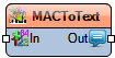The **64-bit Unsigned MAC Address To Text** component converts a 64-bit unsigned integer MAC address into a human-readable text format. This allows network identifiers to be displayed or logged as standard hexadecimal MAC strings.