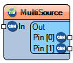 The **CAN bus Multi Source** component copies an incoming CAN bus message to multiple output pins at the same time. The number of output pins is configurable via the **Output Pins** property. This allows the same CAN message to be sent to multiple processing blocks or devices without duplicating the bus connection.