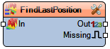 The **Find Last Complex Array Position** component searches the input complex array for matching values from the **Value Elements**, starting from the end of the array. It outputs the index of the last occurrence found. If no match is found, the **Missing** pin triggers.