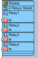 - Name – Component identifier (Default: Arduino 4 Relays Shield).