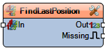 The **Find Last Integer Array Position** component scans the incoming integer array from the **In** pin and searches for the last occurrence of the specified **Value Elements**. If a match is found, its index position is sent to the **Out** pin. If no match is found, the **Missing** clock output is triggered. This component is useful for identifying the most recent or last matching value in an integer array, enabling reverse searches and conditional indexing.