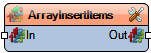 The **Integer Array Insert Items** component allows you to insert new integer values into an existing integer array at a defined **Index** position. This is useful for dynamically modifying arrays by adding elements at specific points in the data stream.