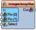 The **Integer Array Mux (Multi Channel Switch)** component allows you to choose one of several integer array input channels and route it to a single output. The selected input is determined by the value received at the **Select** pin. This is useful for switching between multiple integer array sources dynamically.