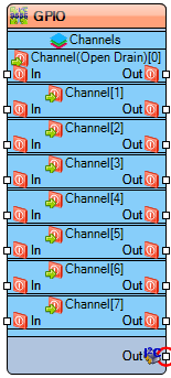 The NXP PCA9556 GPIO (I2C) component interfaces with the PCA9556 chip, adding 8 configurable GPIO channels to your system over an I2C connection. Each channel can be independently set as an input to read a logic level or as an open-drain output to drive a signal low or into a high-impedance state.