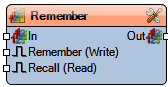 The Remember Integer Array component allows storing an integer array received at the In pin and later recalling it when needed. When a clock signal is received at the Remember pin, the current input array is stored in memory. When a clock signal is received at the Recall pin, the stored array is output through the Out pin.